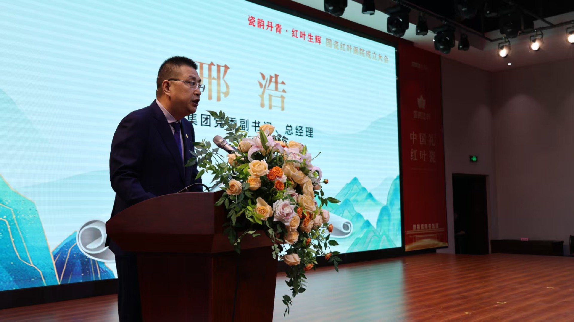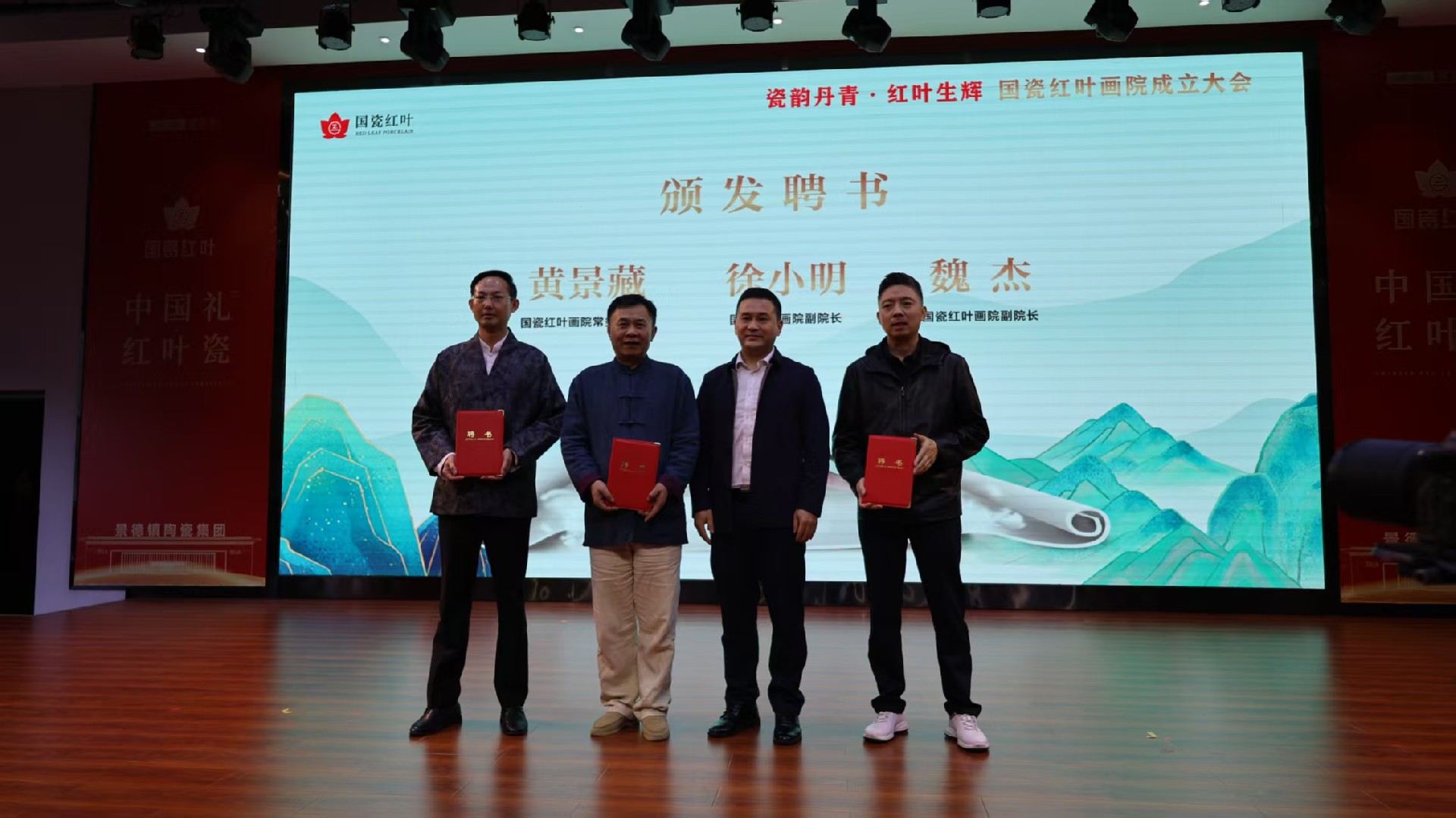 瓷都盛會(huì)話傳承,紅葉溢彩繪新篇。11月9日上午,景德鎮(zhèn)陶瓷集團(tuán)旗下國(guó)瓷紅葉畫院成立大會(huì)在紅葉陶瓷國(guó)瓷館隆重舉行。江西省輕工業(yè)聯(lián)合會(huì)理事長(zhǎng)鄭正春,景德鎮(zhèn)市政府黨組成員、昌南新區(qū)黨工委書(shū)記余立新,景德鎮(zhèn)陶瓷研究院黨組書(shū)記、院長(zhǎng)吳浪,江西陶瓷工藝美院黨委委員、副院長(zhǎng)朱輝球,江西省輕工業(yè)聯(lián)合會(huì)秘書(shū)長(zhǎng)崔軍,景德鎮(zhèn)陶瓷協(xié)會(huì)秘書(shū)長(zhǎng)陳華清,中國(guó)工藝美術(shù)大師劉偉,中國(guó)工藝美術(shù)大師黃景藏,景德鎮(zhèn)陶瓷大學(xué)設(shè)計(jì)藝術(shù)學(xué)院院長(zhǎng)余劍峰,景德鎮(zhèn)學(xué)院陶瓷美術(shù)與設(shè)計(jì)藝術(shù)學(xué)院黨委書(shū)記陳后輝,市工信局副局長(zhǎng)朱成,市昌南新區(qū)黨工委委員、管委會(huì)副主任張英,景德鎮(zhèn)新聞傳媒集團(tuán)副總經(jīng)理丁添,北京天壇文化產(chǎn)業(yè)有限公司CEO王莎莎,嗶哩嗶哩Vsinger業(yè)務(wù)部—市場(chǎng)總監(jiān)劉冰潔及景德鎮(zhèn)陶瓷集團(tuán)領(lǐng)導(dǎo)班子等領(lǐng)導(dǎo)和嘉賓出席大會(huì)。